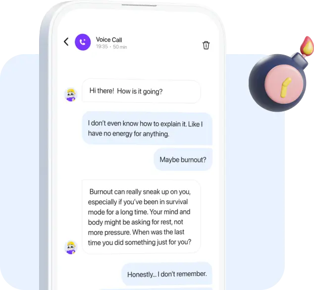 Deep, human-like conversations that help you unpack emotions and find clarity.